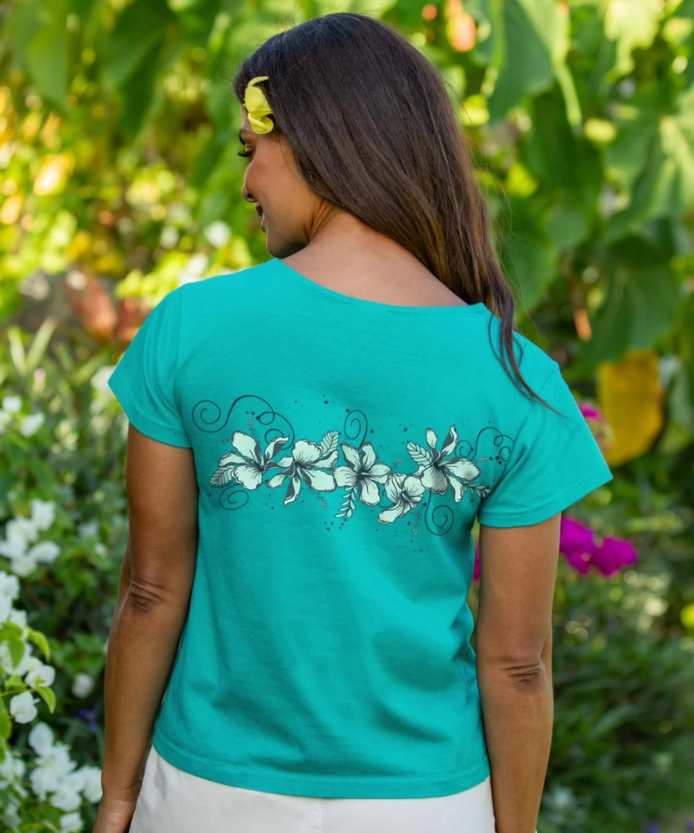 Hibiscus Swirl Band – Jade Short Sleeve Scoop Neck T-Shirt