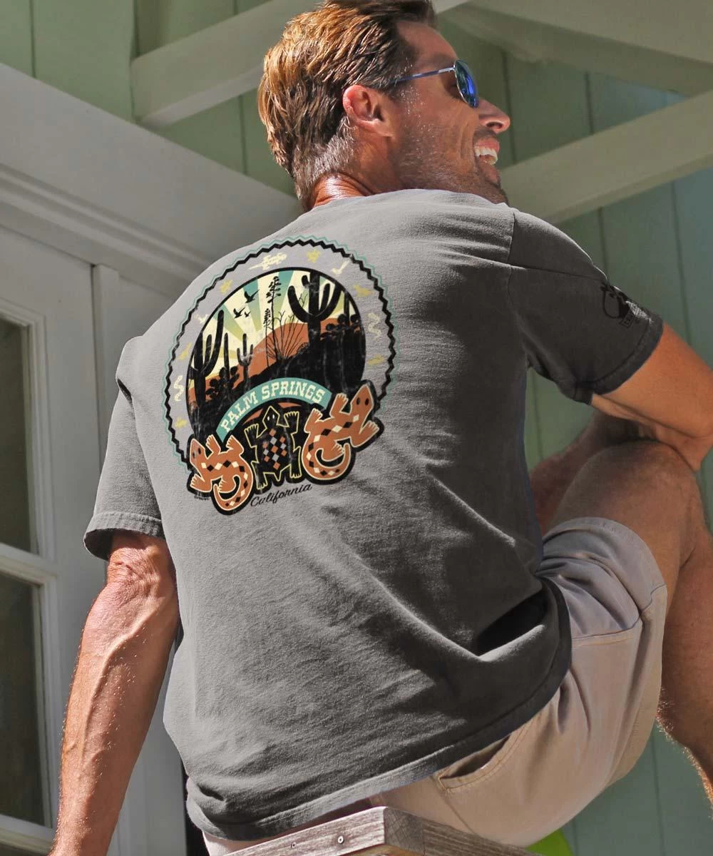 Palm Springs is surrounded by some of the most stunning desert landscapes in the world. At first they may appear barren, but when you take a closer look you’ll see they are teaming with life and have an eye-catching beauty all their own. Made using our exclusive specialty dyeing process that uses real volcanic ash and featuring 100% combed ring-spun cotton, this t-shirt has 50+ SPF protection to keep you feeling cool, calm and protected all year long. We only use environmentally friendly water-based inks that penetrate the material’s fiber resulting in more vibrant colors, softer feel and artwork that doesn’t crack or peel. Plus, it is proudly printed in the United States for quality you can see and designs that stand the test of time.