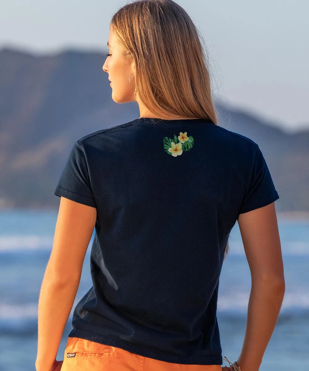Plumeria Aloha – Navy Short Sleeve Crewneck T-Shirt