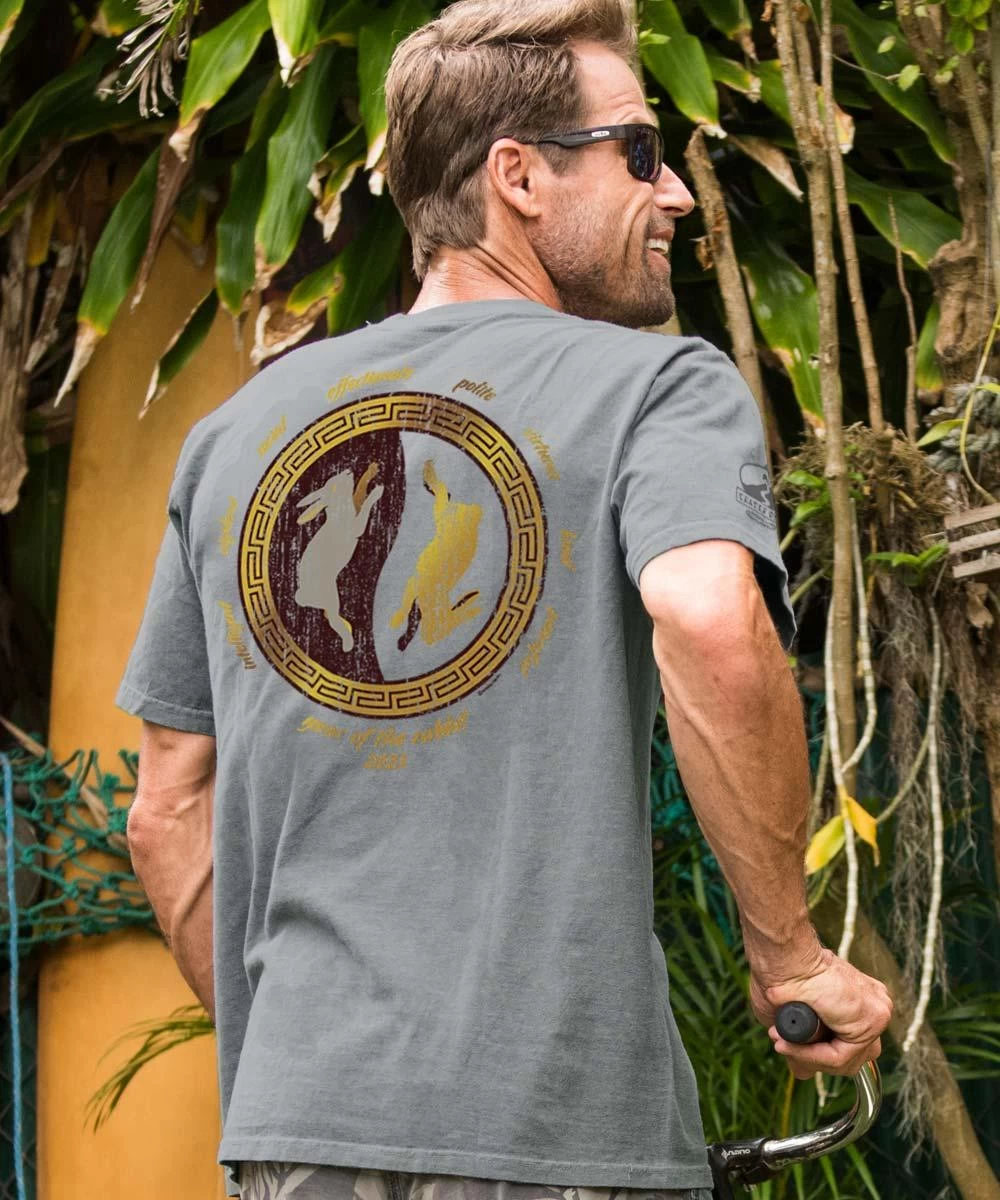 Forget your golden years and think your golden year – like 2023 is going to be time for you to shine. Embrace your inner rabbit and get a jump on the best 365 days of your life with this gilded tee. Made using our exclusive specialty dyeing process that uses real volcanic ash and featuring 100% combed ring-spun cotton, this t-shirt has 50+ SPF protection to keep you feeling cool, calm and protected all year long. We only use environmentally friendly water-based inks that penetrate the material’s fiber resulting in more vibrant colors, softer feel and artwork that doesn’t crack or peel. Plus, it is proudly printed in the United States for quality you can see and designs that stand the test of time.